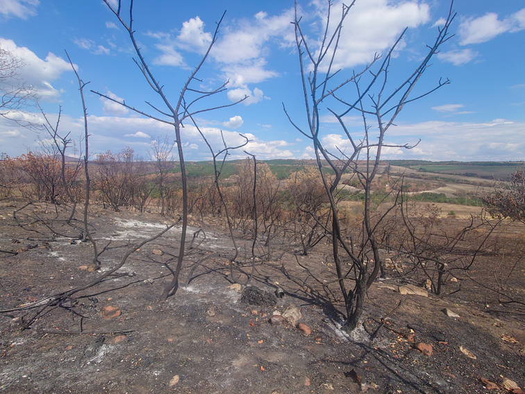 For the second year in a row, wildfires destroyed habitat of Roach’s Mouse-tailed Dormouse in Bulgaria. It happened in 2023 also, and the effect was devastating. Nedko Nedyalkov, who has studied this population already for several years, found only two young mouse-talied dormice after the 2023 fires. The situation after the 2024 fires looks even more bleak. The wildfires didn’t reach Nedko’s study area this time but did destroy potential habitat around the study area. This diminishes the chances of recolonisation from these surroundings if the species lives there.